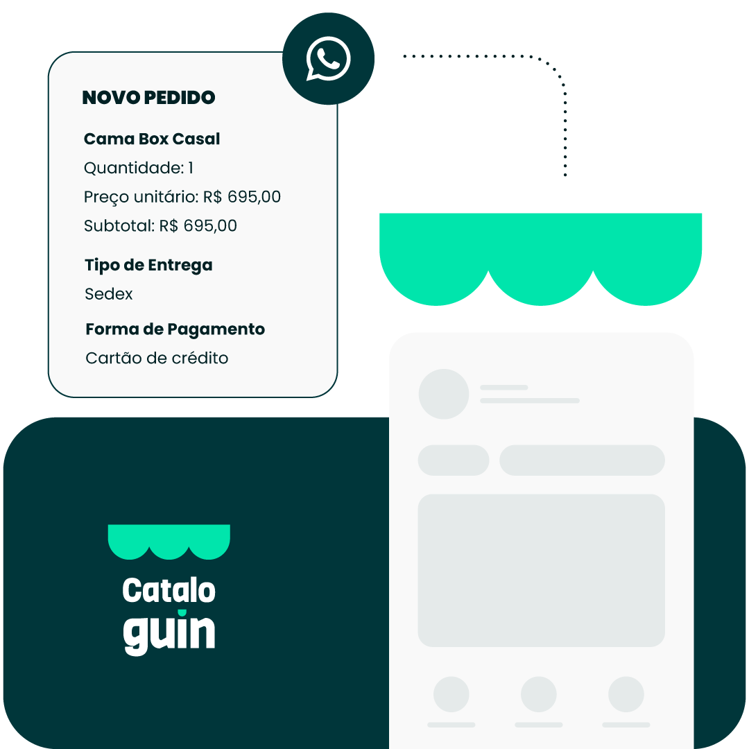 Ofereça uma jornada de compra simples e prática: seus clientes escolhem os produtos e enviam o pedido pelo WhatsApp instantaneamente, tornando a finalização da venda mais rápida e direta.